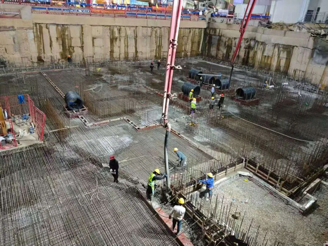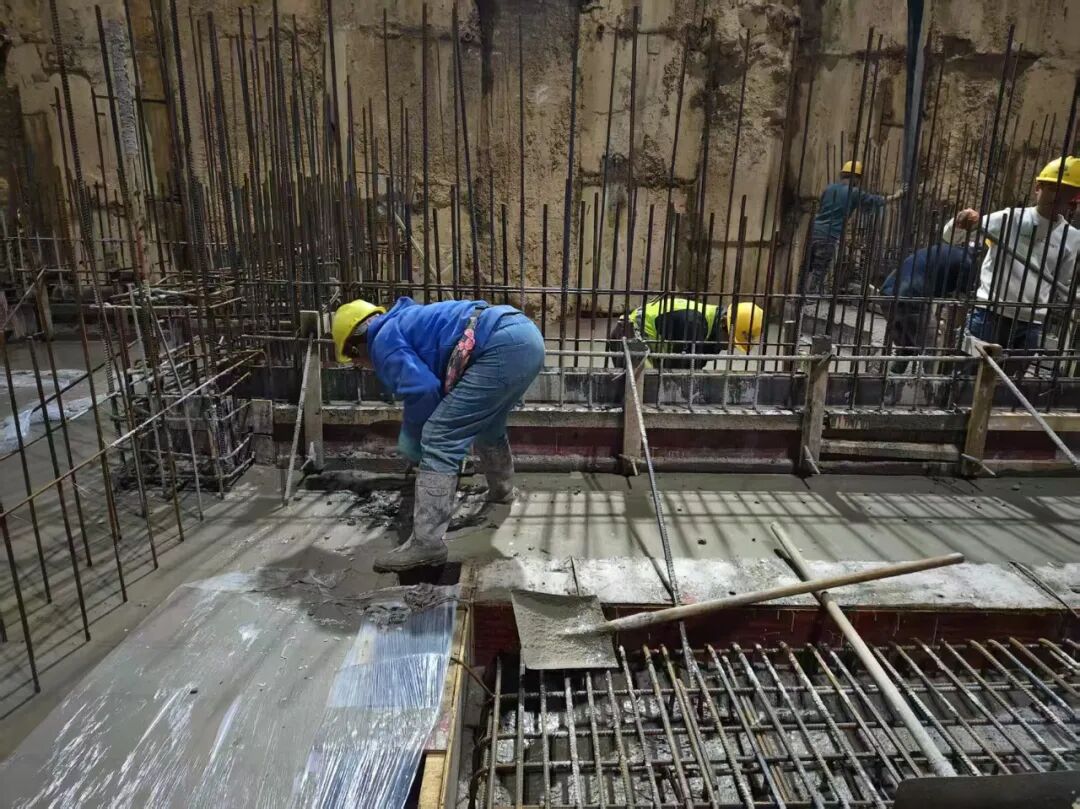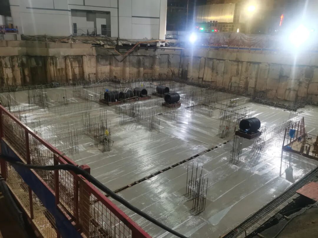 施工期间,项目团队创新引入“跳仓法”分块浇筑工艺,结合抗裂纤维混凝土技术,克服了大体积混凝土连续供应难题,显著提升了施工效率与结构抗渗性能。同时,实施24小时轮班作业,挂图作战、抢抓工期,最终克服雨季及场地限制,确保了该楼栋底板工程如期完成。