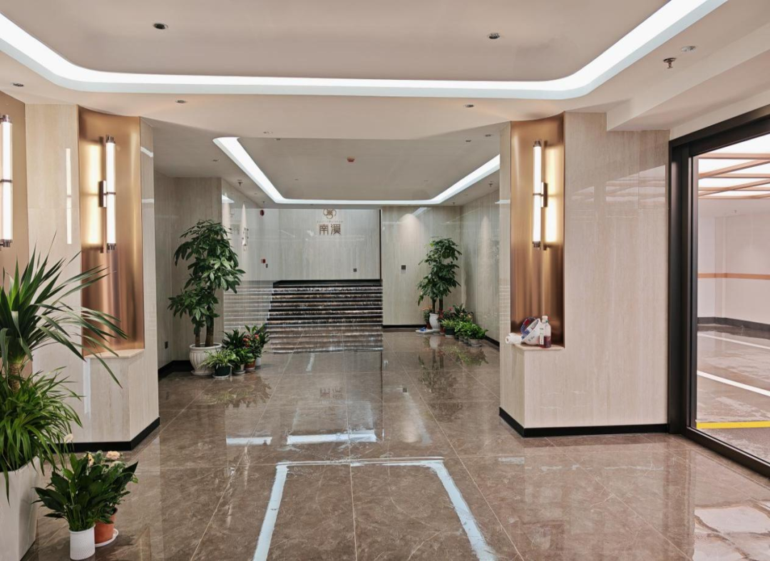 与时光共筑的奢阔门厅:归家动线至入户大堂,臻选金刚砂加固化剂地坪系统,定义地面工艺新标准。金刚砂骨料与特种水泥的精密结合,经打磨固化后,形成极致密、高强度、超耐磨的坚实界面,其硬度与耐久性远超普通地坪,足以从容应对漫长岁月的高频使用。