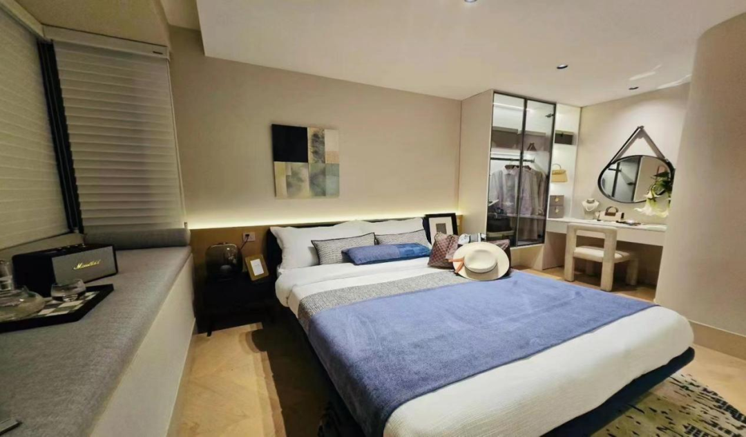 套房式主卧:约17㎡独立套间,巧妙规划睡眠区与独立梳妆区,以五星级酒店为蓝本,营造私密、从容的休憩氛围。