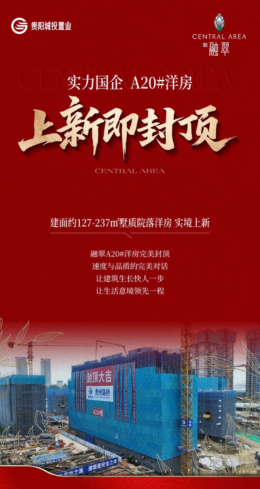 贵阳城投·融翠项目A20号楼主体顺利封顶 新品“上新即封顶”彰显实力